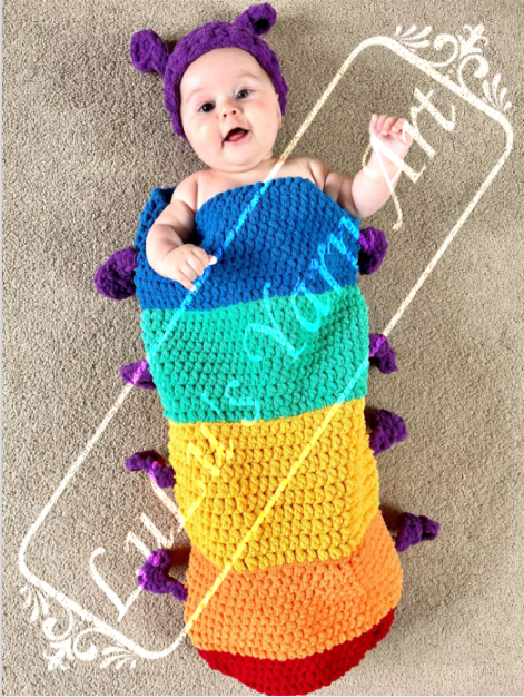 This sleep sack was so quick, and so much fun! The first recipient was kind enough to let me share a picture of her little one in it, which makes it so much cuter. The pattern can be found at https://www.yarnspirations.com/bernat-caterpillar-crochet-snuggle-sack/BRC0202-012036M.html. It uses Bernat Blanket Yarn, which I love to work with. I actually ended up having two of these sleep sacks commissioned.